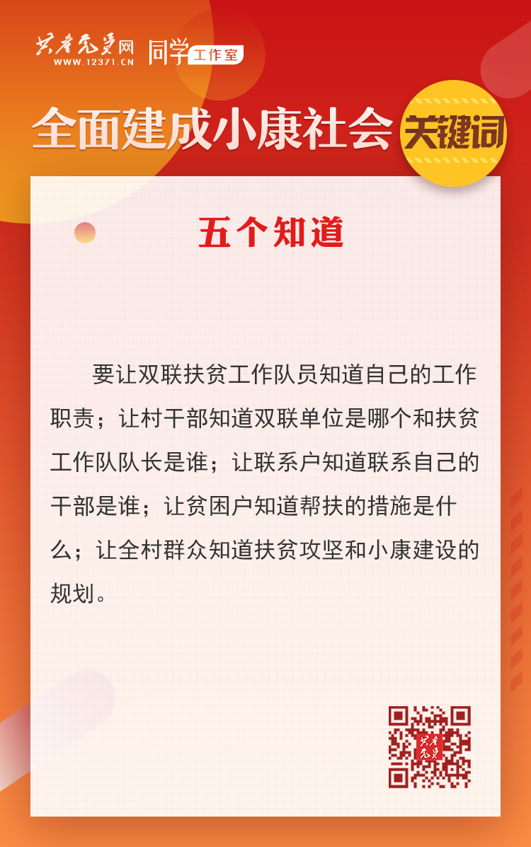即要让双联扶贫工作队员知道自己的工作职责;让村干部知道双联单位是哪个和扶贫工作队队长是谁;让联系户知道联系自己的干部是谁;让贫困户知道帮扶的措施是什么;让全村群众知道扶贫攻坚和小康建设的规划。