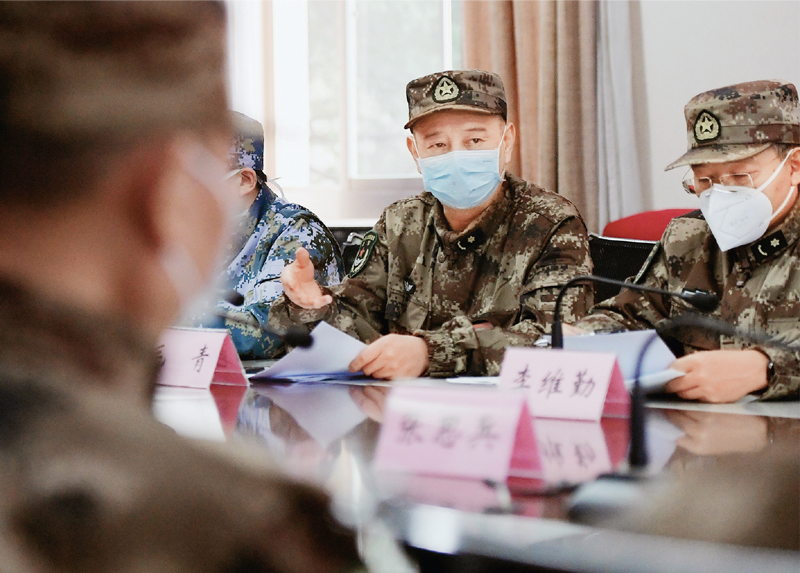 2020年2月26日,解放军感染病防控专家毛青(右二)在火神山医院参加专家组会诊。 新华社记者 李贺/摄