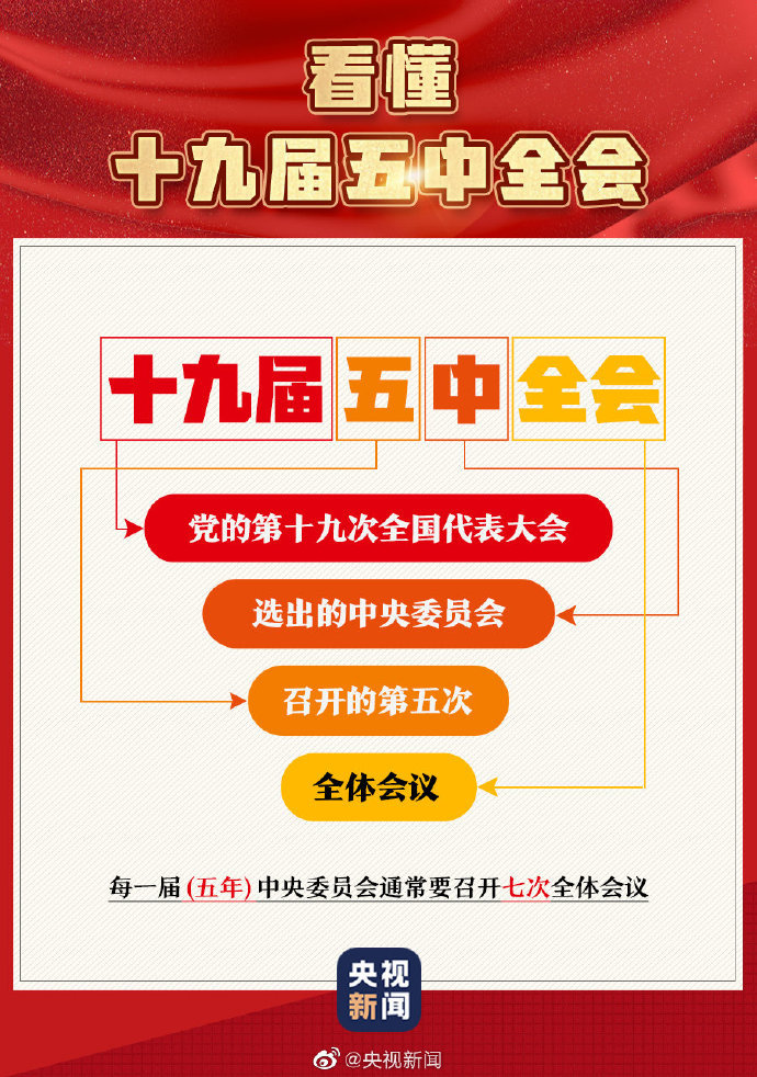 中国共产党第十九届中央委员会第五次全体会议,于10月26日至29日在北京举行。主要议程是,中共中央政治局向中央委员会报告工作,研究关于制定国民经济和社会发展第十四个五年规划和二〇三五年远景目标的建议。今天,一组图带你了解十九届五中全会。